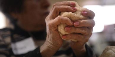 The adult is always invited to participate activities and assisted to find meaningful roles and responsibilities within the community. The hand, to heart, to head connection is muscle memory. Many times people living with dementia access memories through familiar movement.